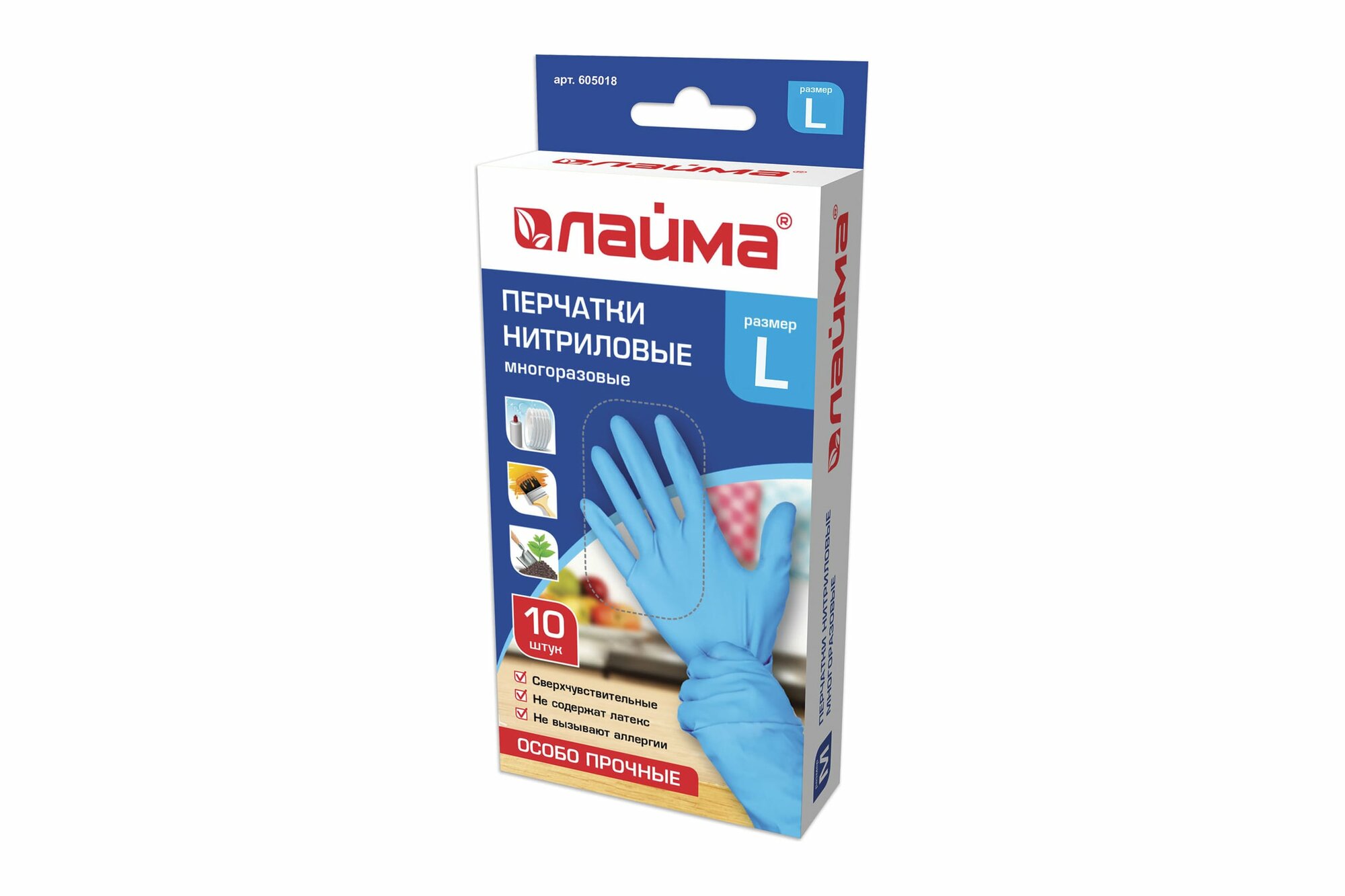 Купить Перчатки нитриловые многоразовые особо прочные, 5 пар (10 шт), L (большой), голубые, лайма, 605018