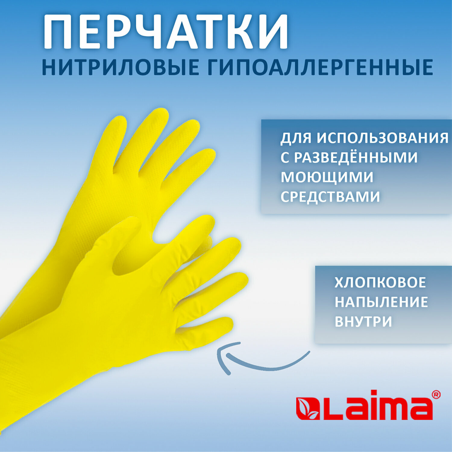 Перчатки нитриловые многоразовые, гипоалергенные LAIMA прочные, хлопчатобумажное напыление, разм L (большой)