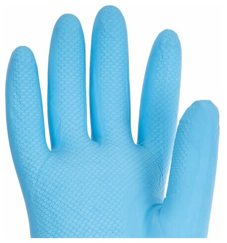 Перчатки нитриловые многоразовые хозяйственные Гипоаллергенные Laima Прочные, хлопчатобумажное напыление, размер М (средний), синие, вес 36 г, 604998