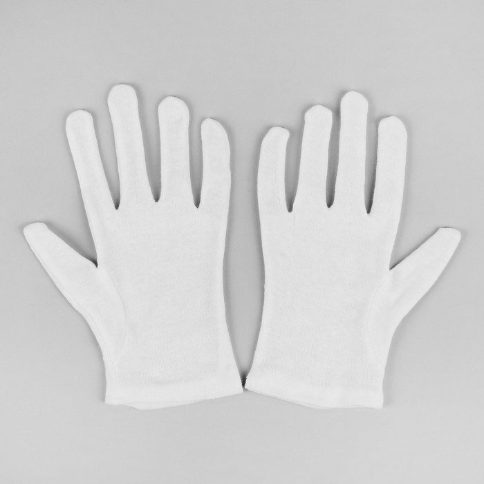 Перчатки хлопковые, размер L, пара, в картонной коробке, цвет белый 1шт.