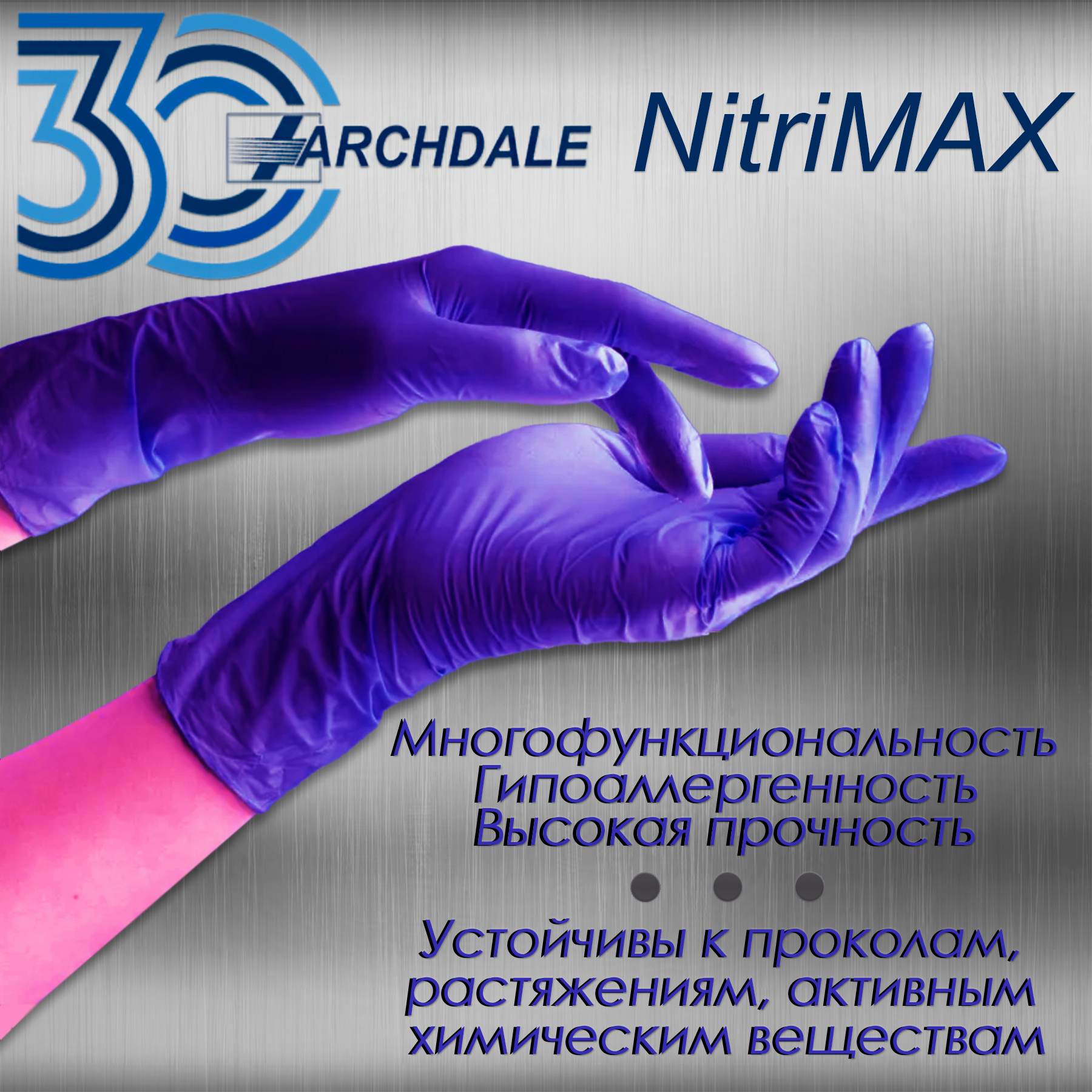 Перчатки нитриловые (фиолетовый) ARCHDALE/NITRIMAX "L" 100шт/упк 3,2гр интересное:
