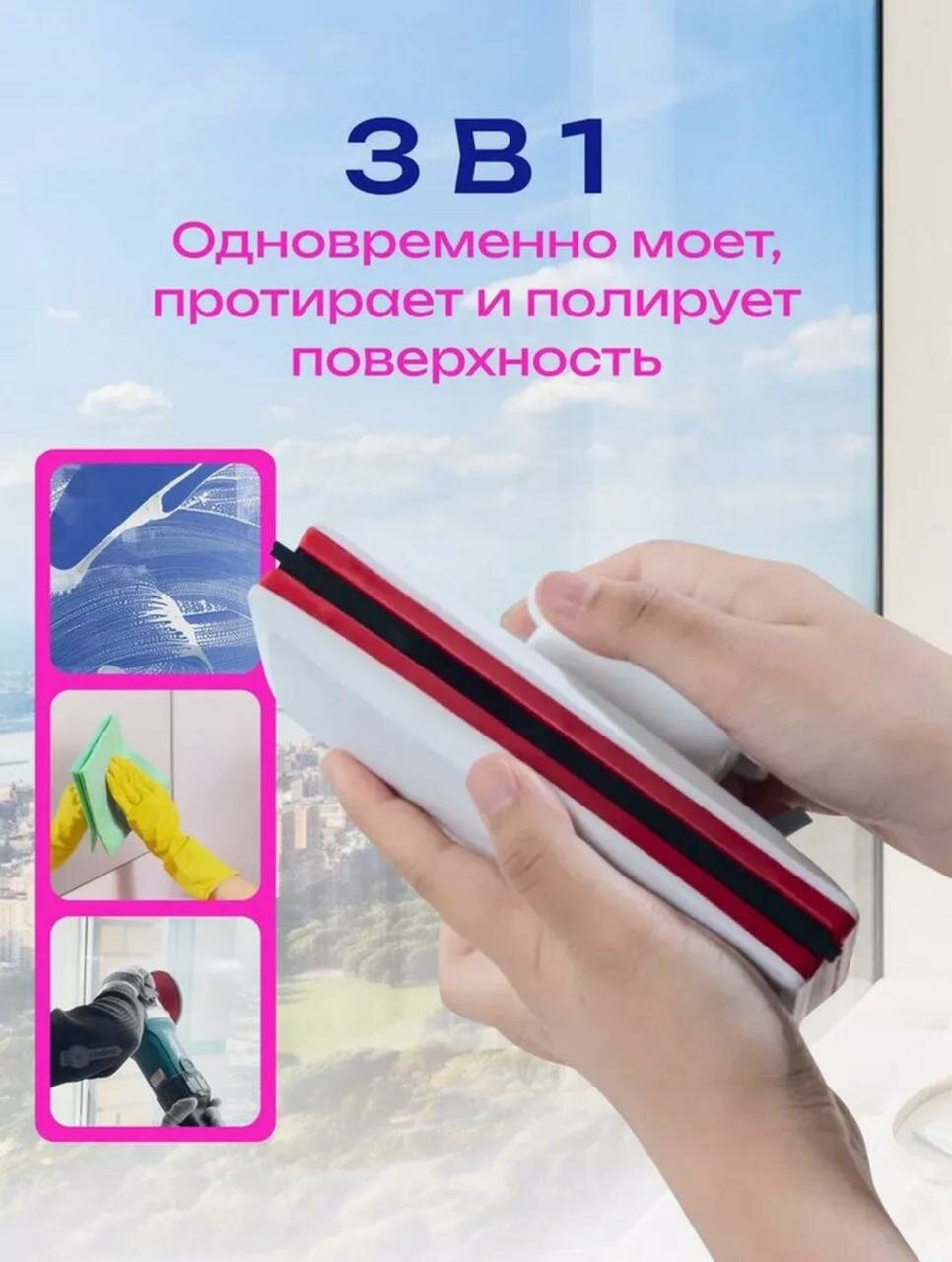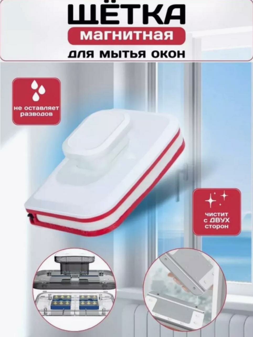 Магнитная щетка для мытья окон/Мойщик окон с двух сторон/Стекломой/Двухсторонняя щетка интересное: