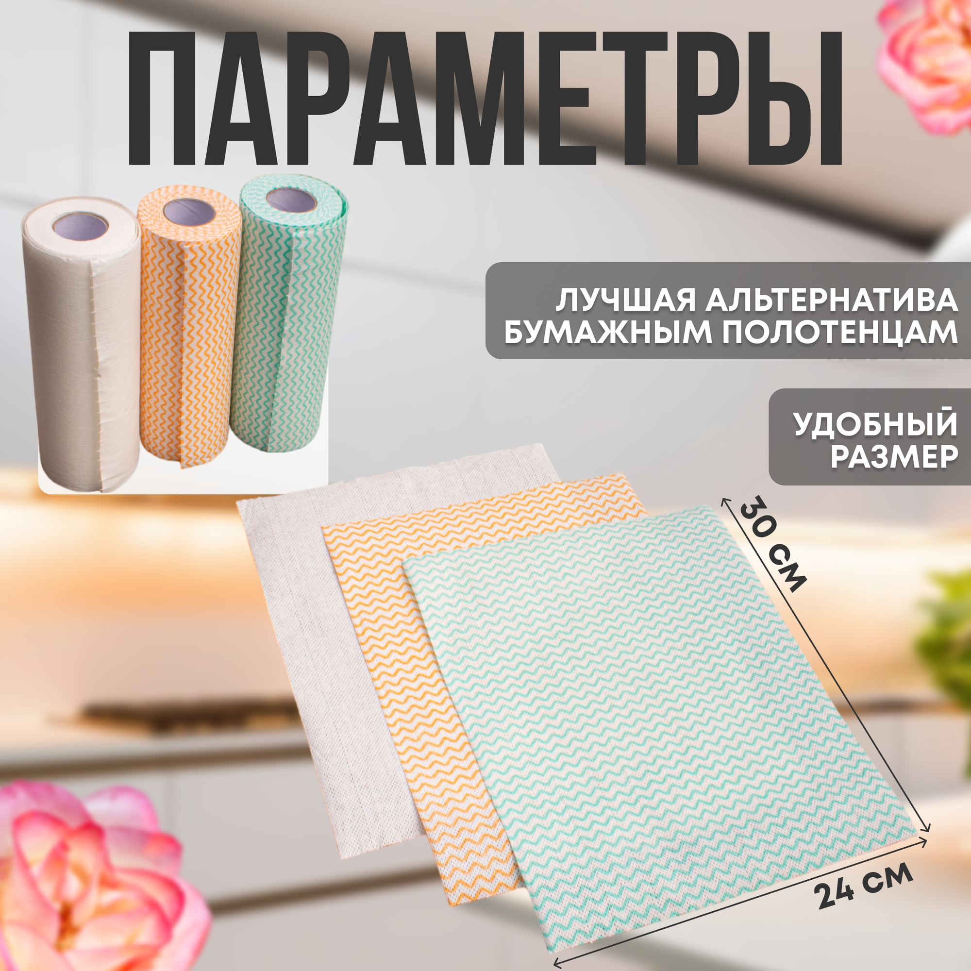"Универсальные салфетки оранжевые для уборки" - 40 штук в рулоне, многоразовые, из микрофибры интересное: