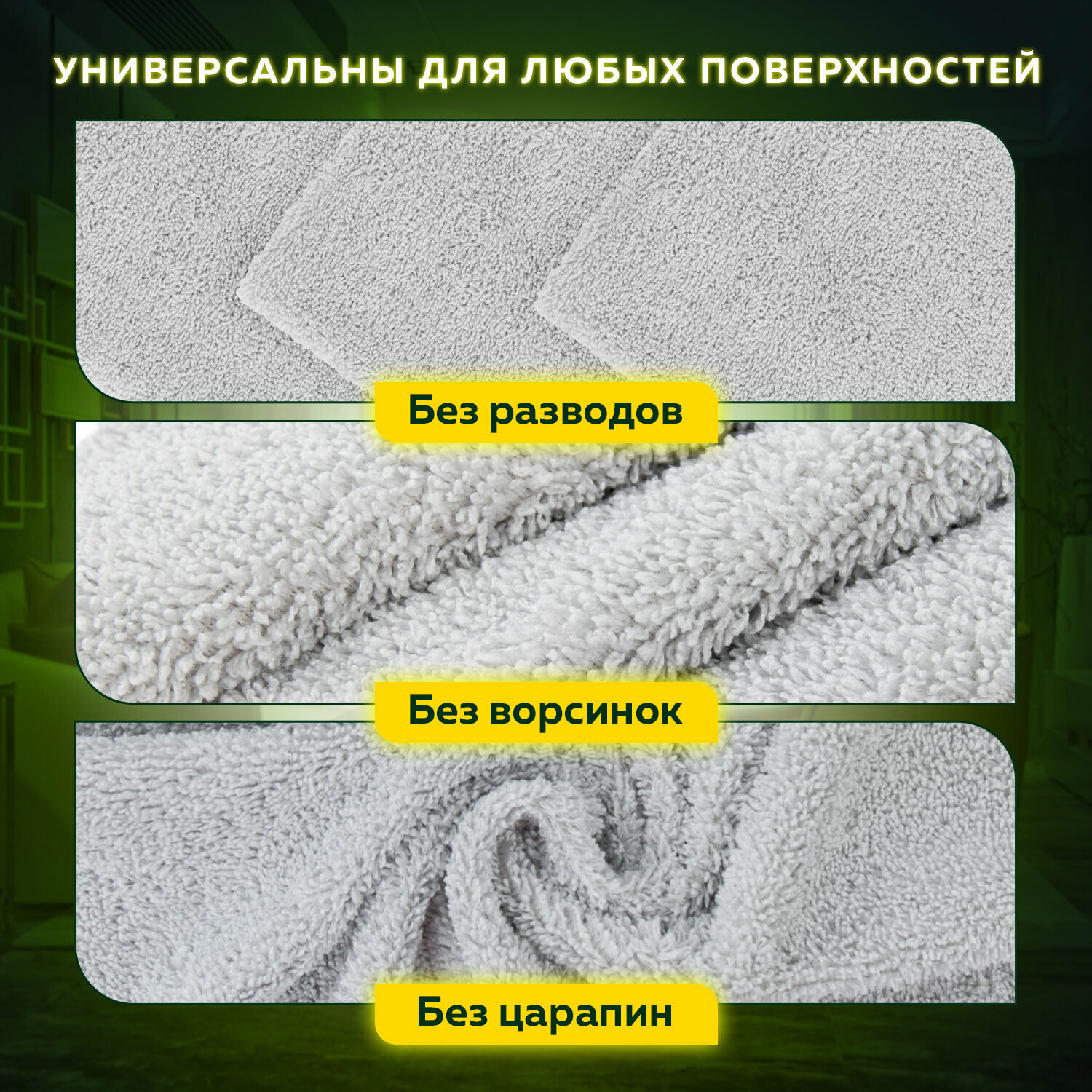 Салфетка универсальная двусторонняя, плотная микрофибра (плюш), 35х35 см, желтая/серая, лайма, 604686