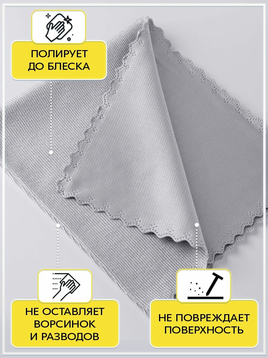 Салфетки для окон, серые, микрофибра, 30x30см, 2 штуки в упаковке