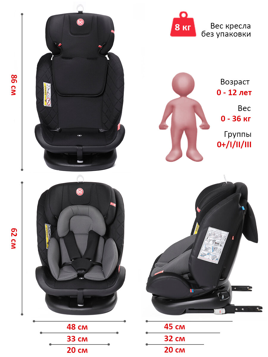 Детское удерживающее устройство Shelter гр 0+/I/II/III, 0-36кг, (0-12лет) BabyCare, ЭКО-Темно-серый