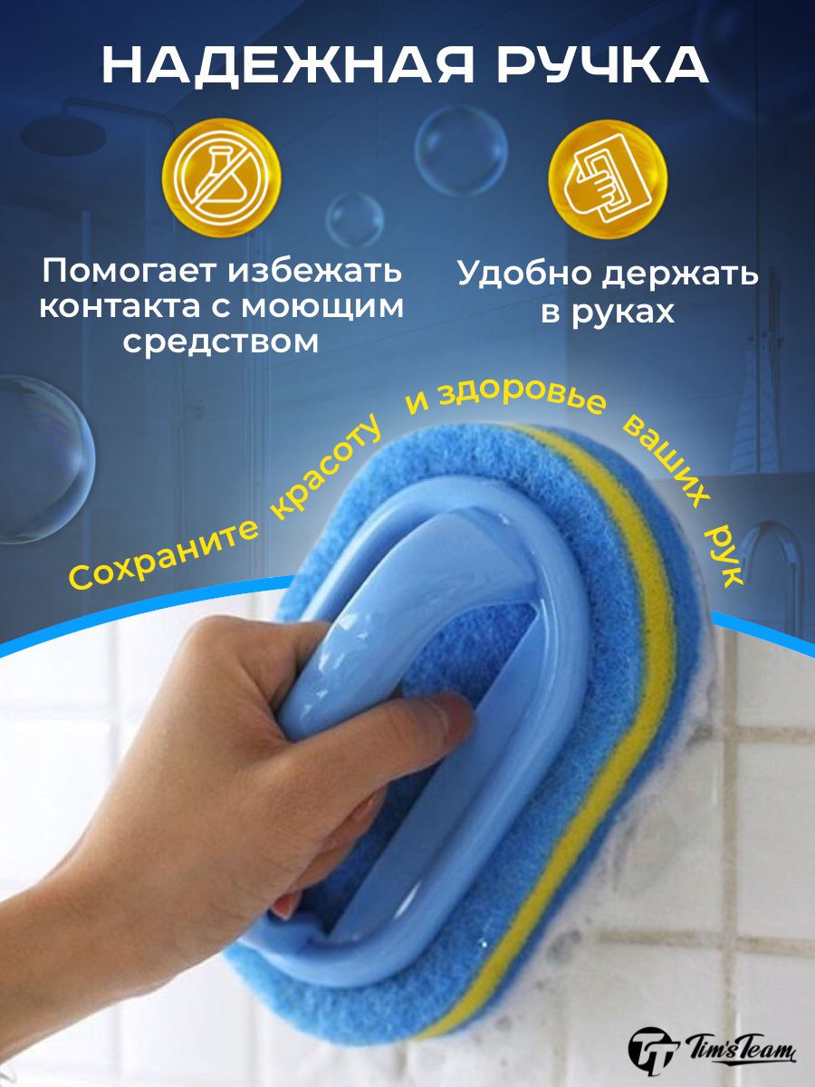Губка хозяйственная с ручкой Tim's Team для посуды и сантехники, 14х9 см интересное: