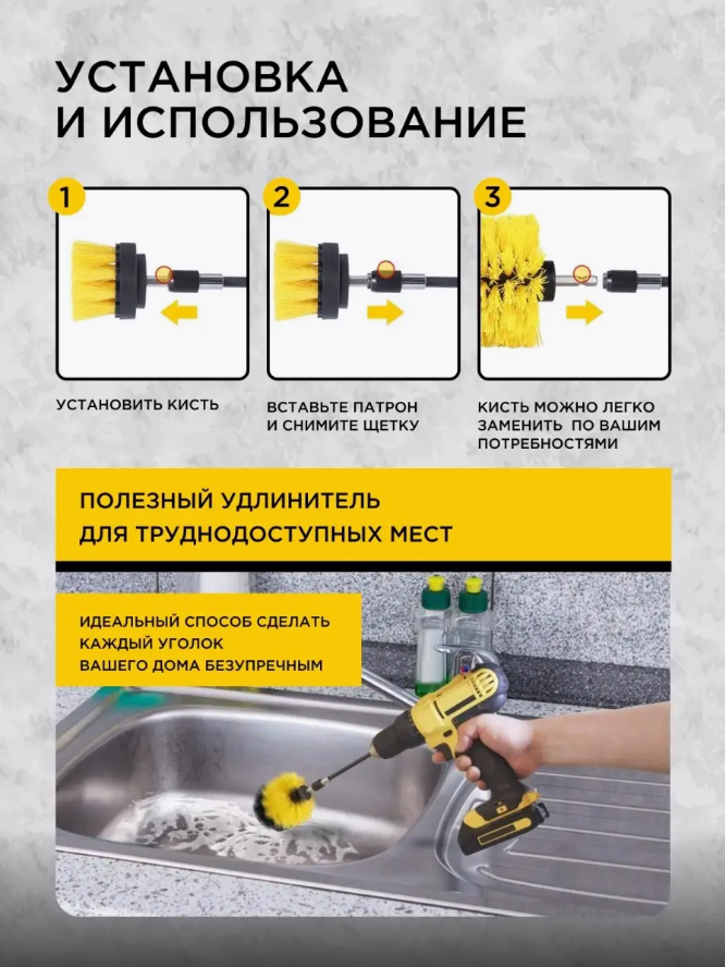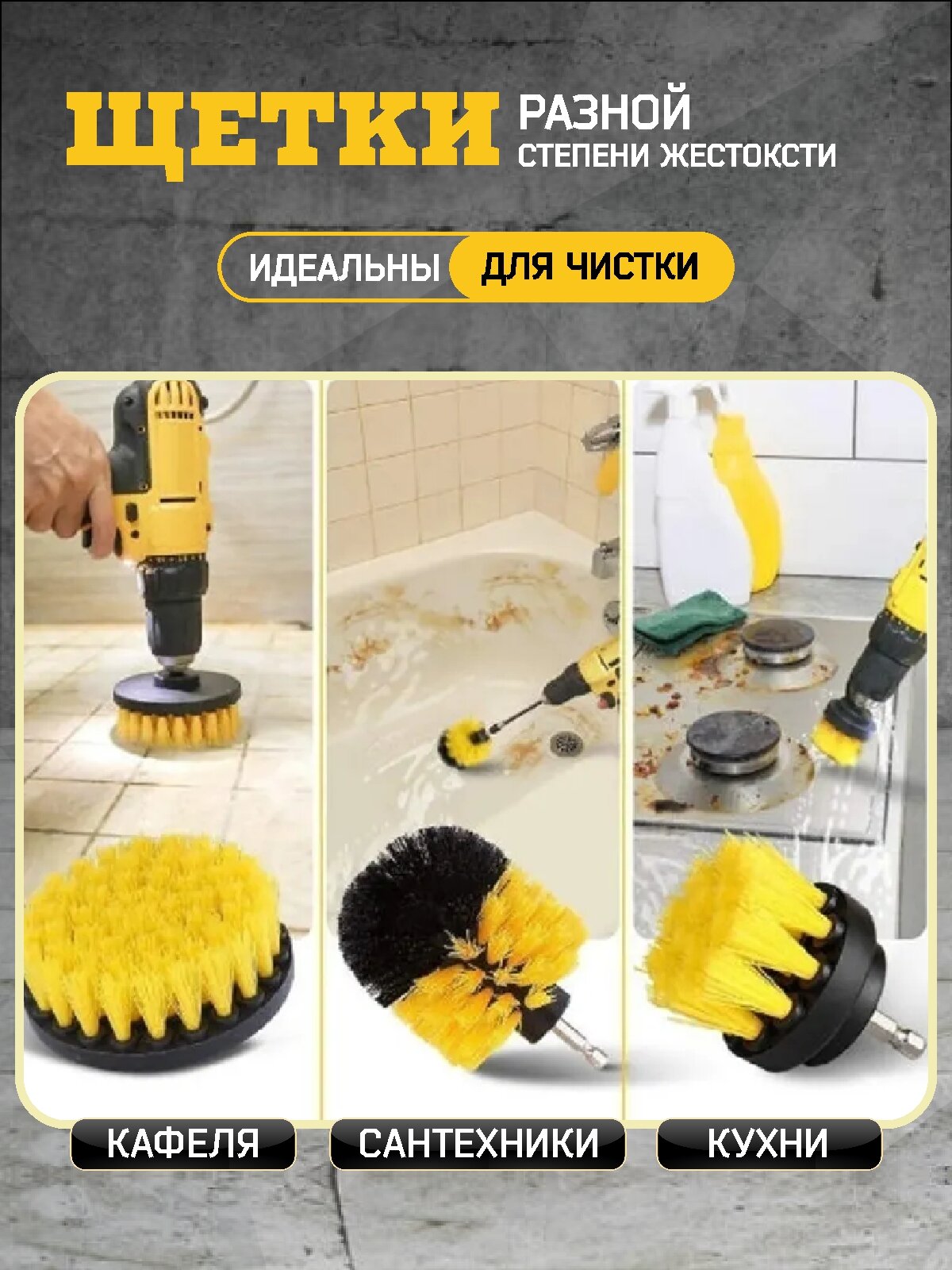 Набор насадок-щеток для дрели, щетки на шуруповерт для уборки, 4 шт в наборе