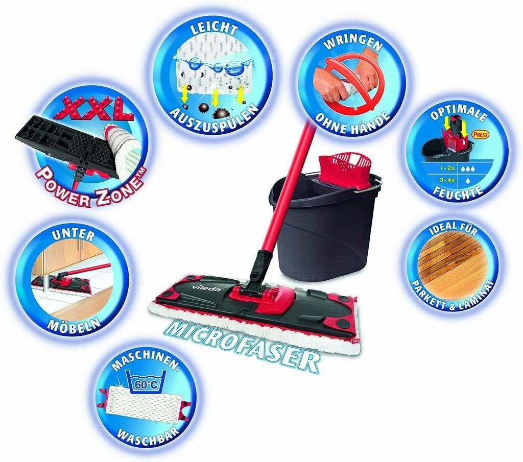 Швабра для уборки с ведром VILEDA Ultramax интересное: