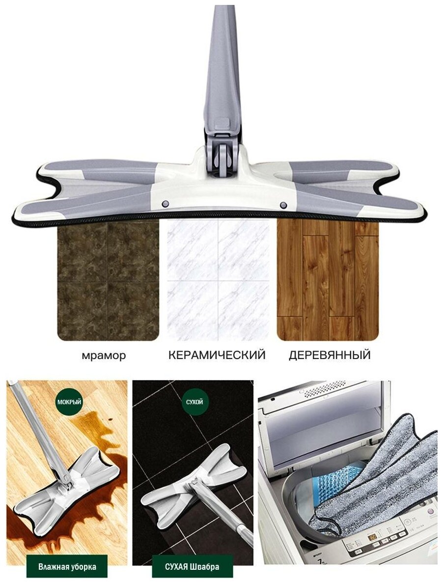 Швабра с отжимом на ручке / Швабра бабочка для уборки и мытья пола / Мойка окон / Самоотжимная швабра / Luoweite интересное: