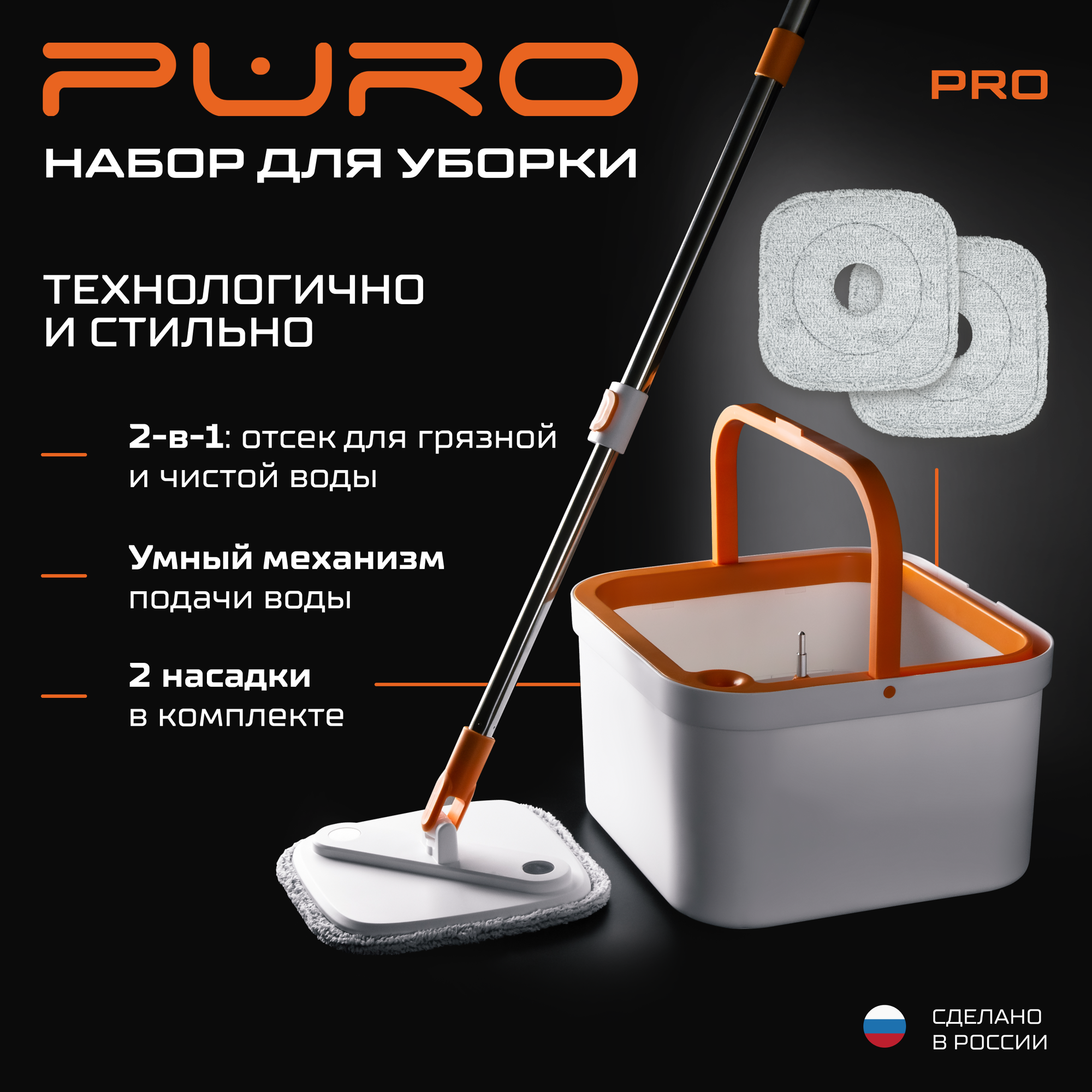 Комплект для уборки PURO PRO, черный