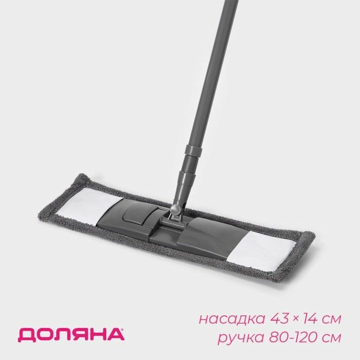 Купить Швабра для мытья пола плоская Доляна, насадка из микрофибры 43 14 см, телескопическая ручка 80-120 см