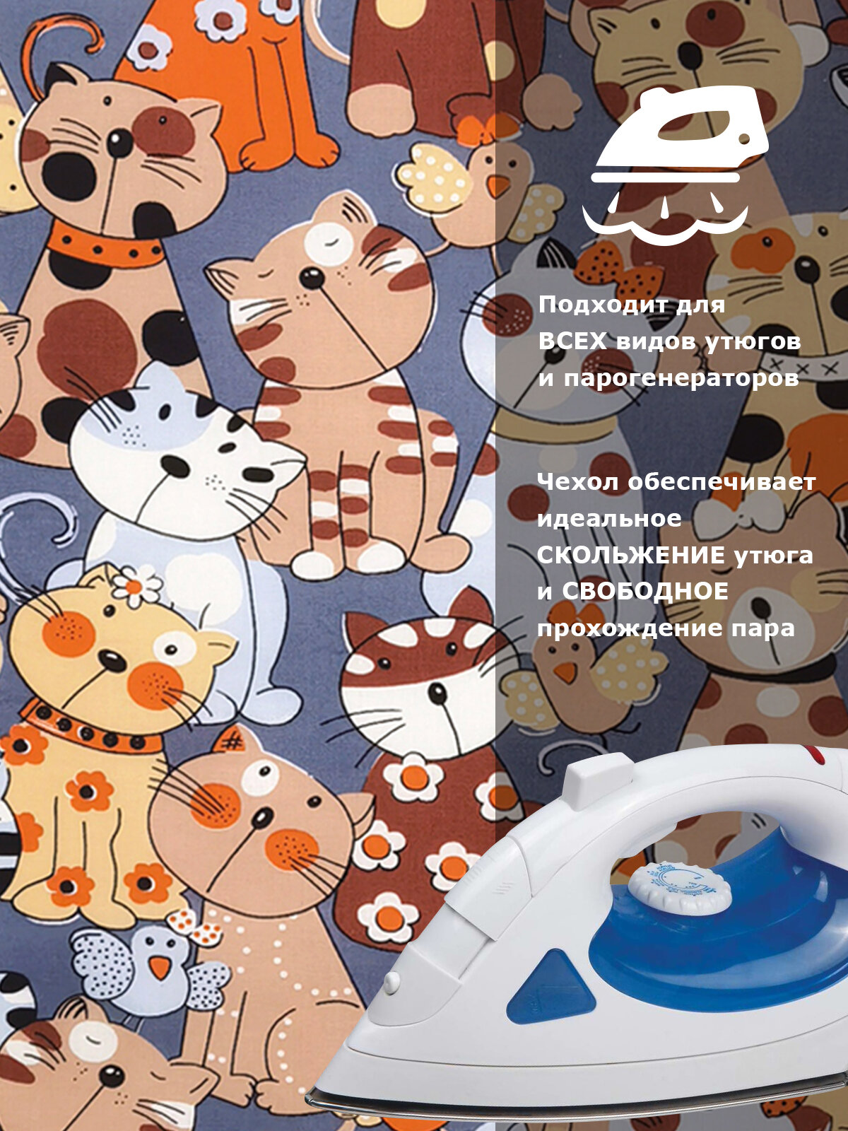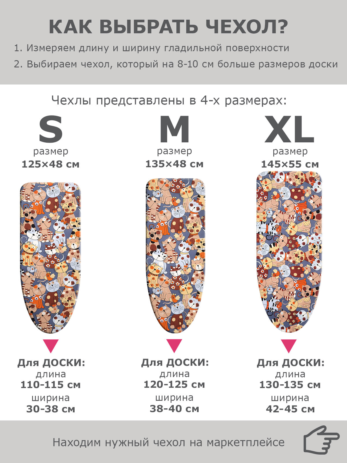 Купить Чехол для гладильной доски VARMAX, размер 125*48 см (S), CATS ORANGE