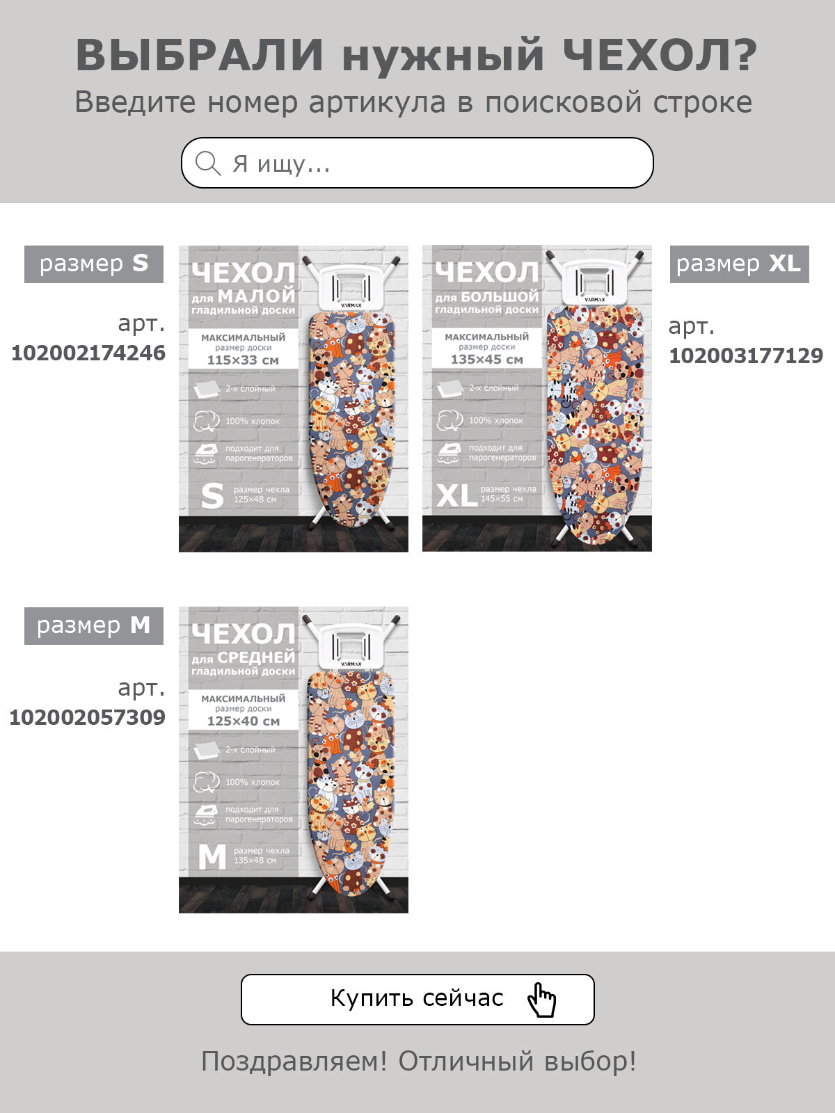 СохранитьЧехол для гладильной доски VARMAX, размер 125*48 см (S), CATS ORANGE интересное: