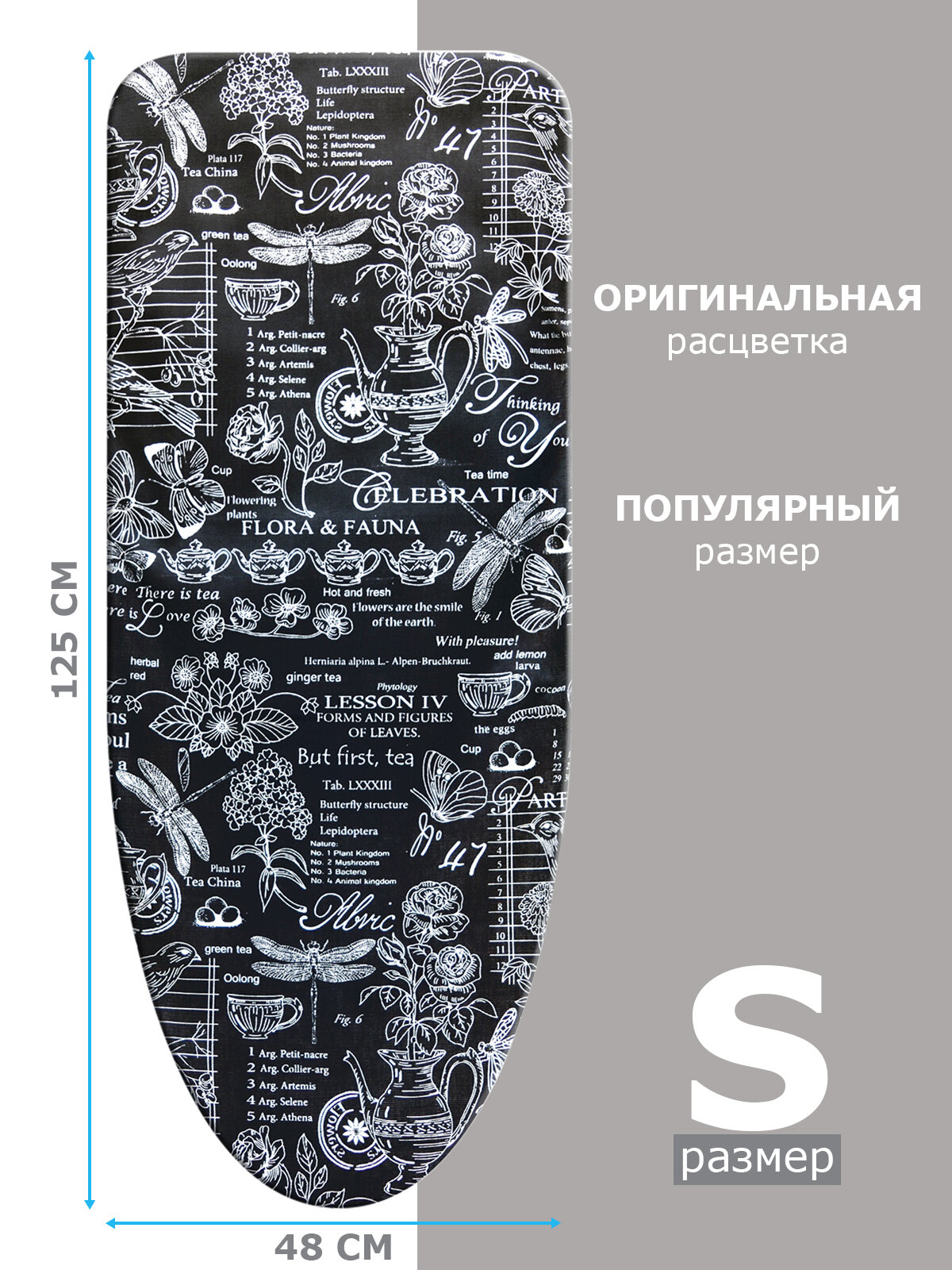 Чехол для гладильной доски VARMAX, размер 125*48 см (S), серия FLORAL DESIGN
