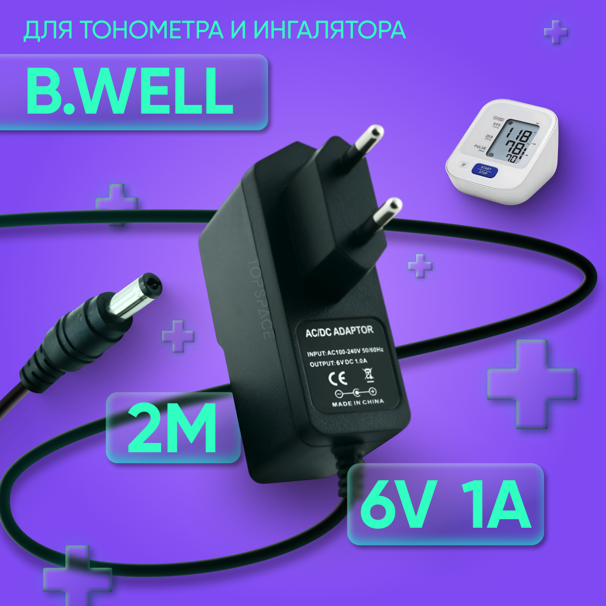 Блок питания ( сетевой адаптер) для тонометра и ингалятора B.Well 6V 1A 5.5х2.1 мм с зажимом интересное: