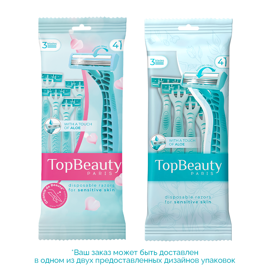Купить Одноразовая женская бритва TopBeauty Paris, 3 лезвия, плавающая головка, 4шт