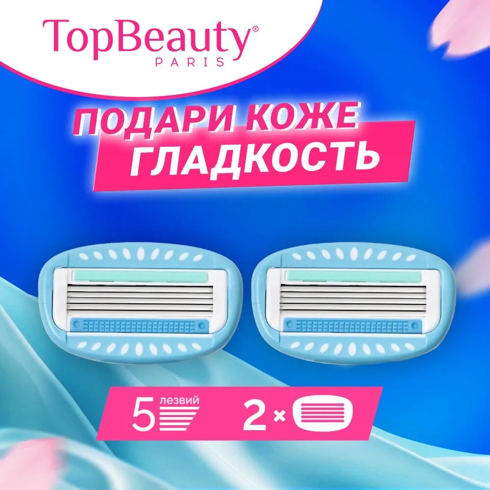 Кассеты для бритвенных станков TopBeauty Paris Cменные женские, 5 лезвий, совместимы с Gillette Venus, 2 шт