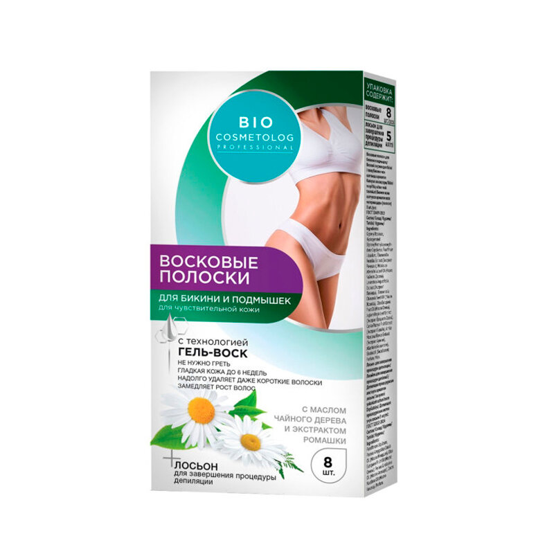 Восковые полоски Фитокосметик "Bio Cosmetolog Professional", для бикини и подмышек, 8 шт