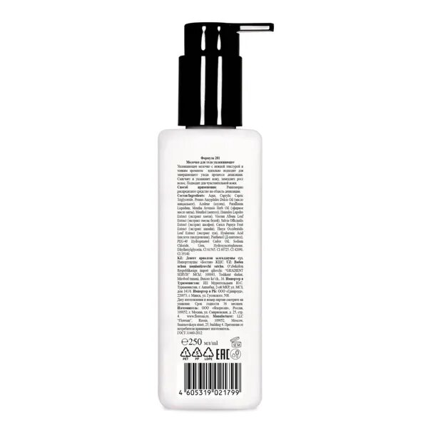 | Дополнительная информация | Увлажняющее молочко с нежной текстурой и тонким ароматом идеально подходит для завершающего ухода процесса депиляции. Смягчает и увлажняет кожу, замедляет рост волос. Подходит для чувствительной кожи. |
