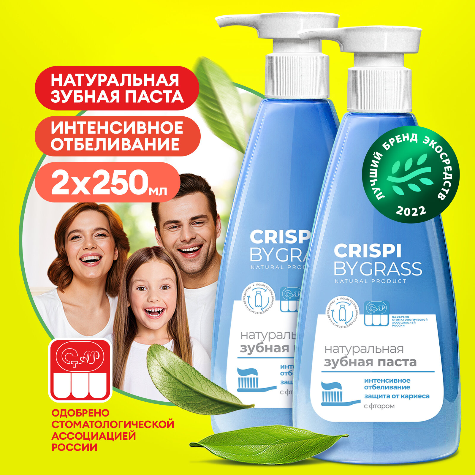Набор зубных паст с дозатором Grass Crispi Отбеливающая 2шт по 250мл интересное: