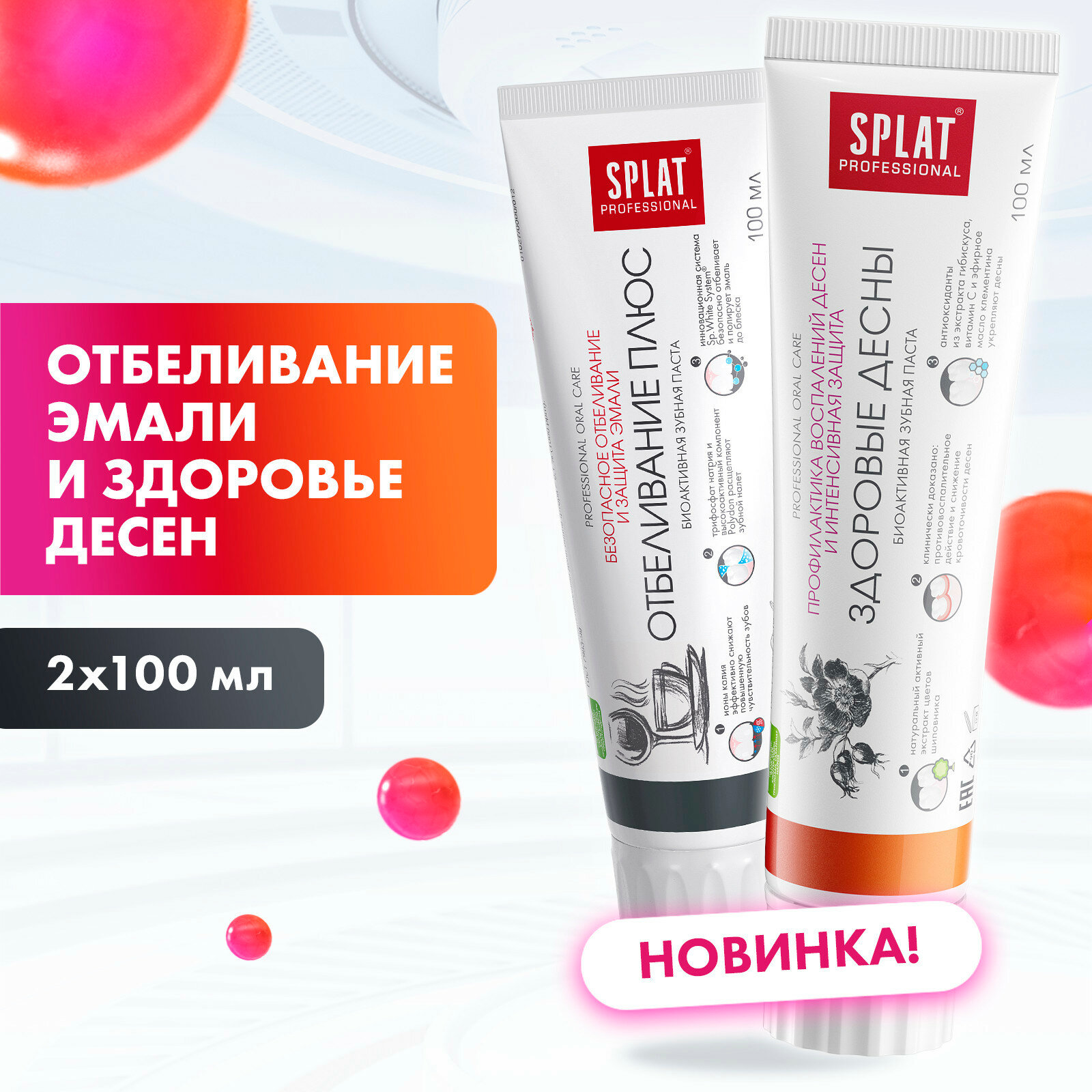 Зубная паста SPLAT, набор Здоровые десны, 100 мл и отбеливание плюс, 100 мл интересное: