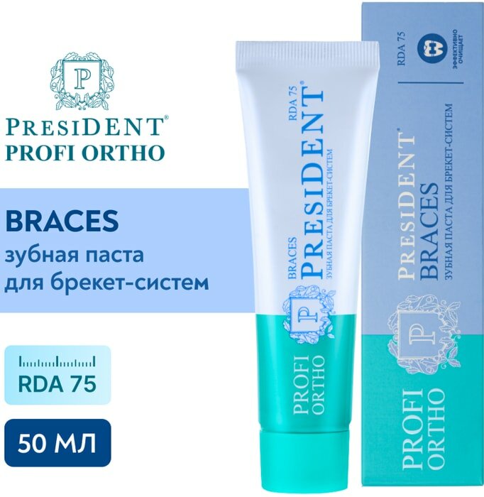 Зубная паста PresiDENT PROFI ORTHO Braces (75 RDA), 50 мл интересное: