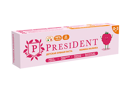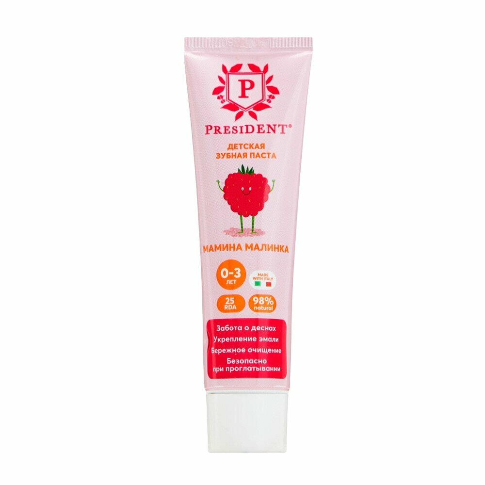 Купить зубная паста детская PRESIDENT 0-3 Мамина малинка (25 RDA) 32 г