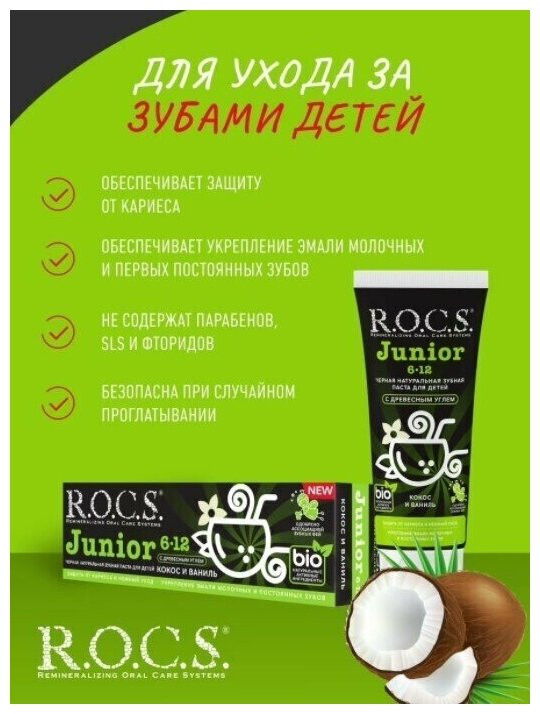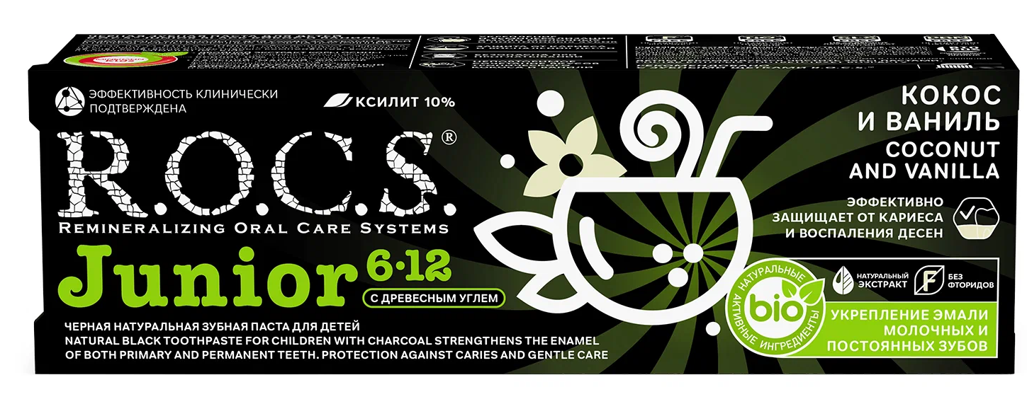 Зубная паста R.O.C.S. Junior Black Кокос и Ваниль 6-12 лет, 60 мл