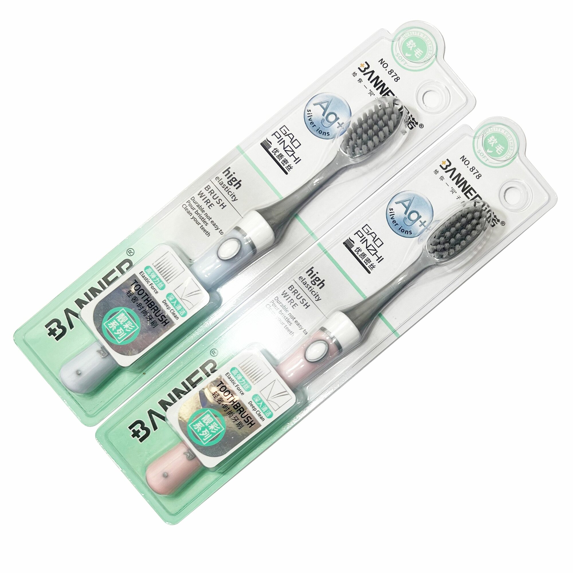 Купить Зубная щётка BANNER №878 с ионами серебра, средней жёсткости, 2 штуки