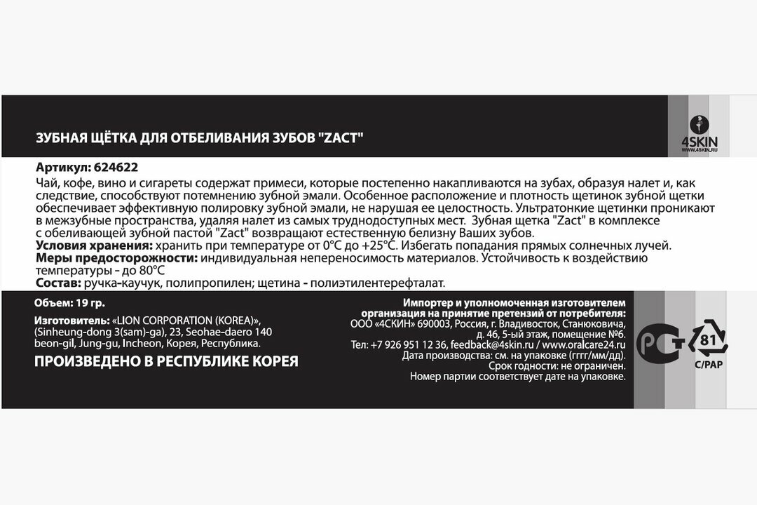 Щетка зубная LION ZACT жесткая для курящих (в ассортименте) интересное: