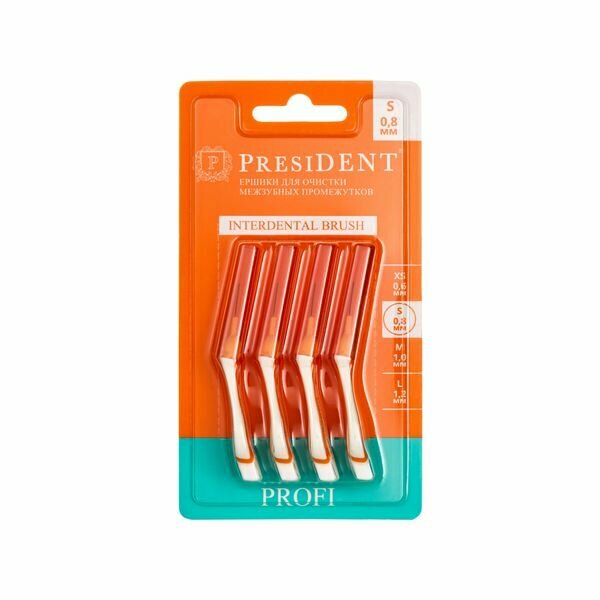 Ершики для очистки межзубных промежутков PRESIDENT размер S интересное: