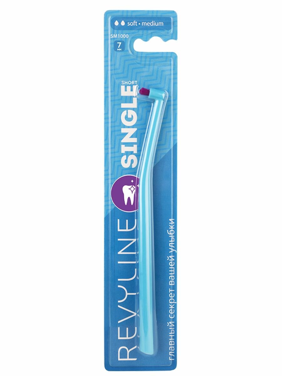 Купить Монопучковая зубная щетка Revyline SM 1000 Single Short голубая с фиолетовой щетиной, 7мм