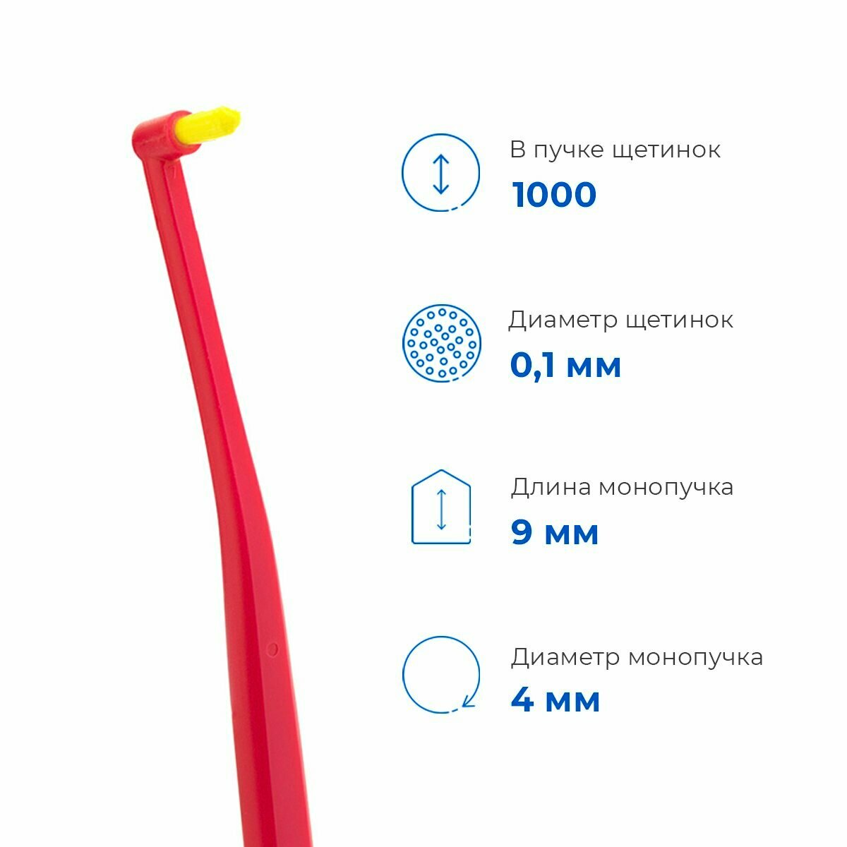 Монопучковая зубная щетка Revyline SM 1000 Single Short жёлтая с красной щетиной, 7мм