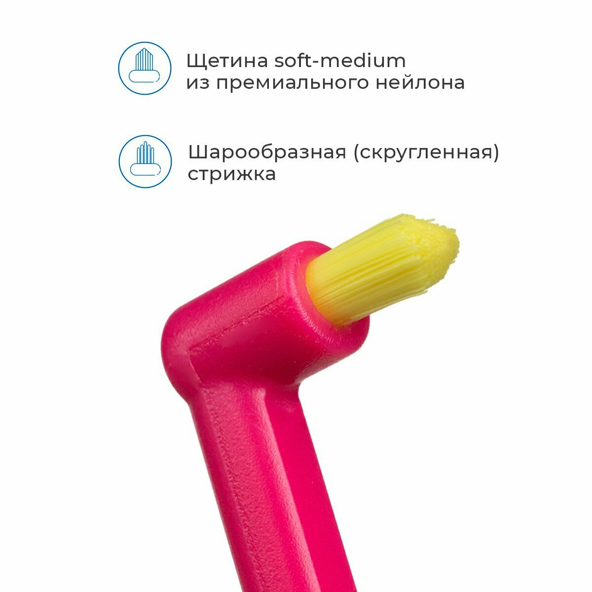 Монопучковая зубная щетка Revyline SM 1000 Single Short розовая с жёлтой щетиной, 7мм