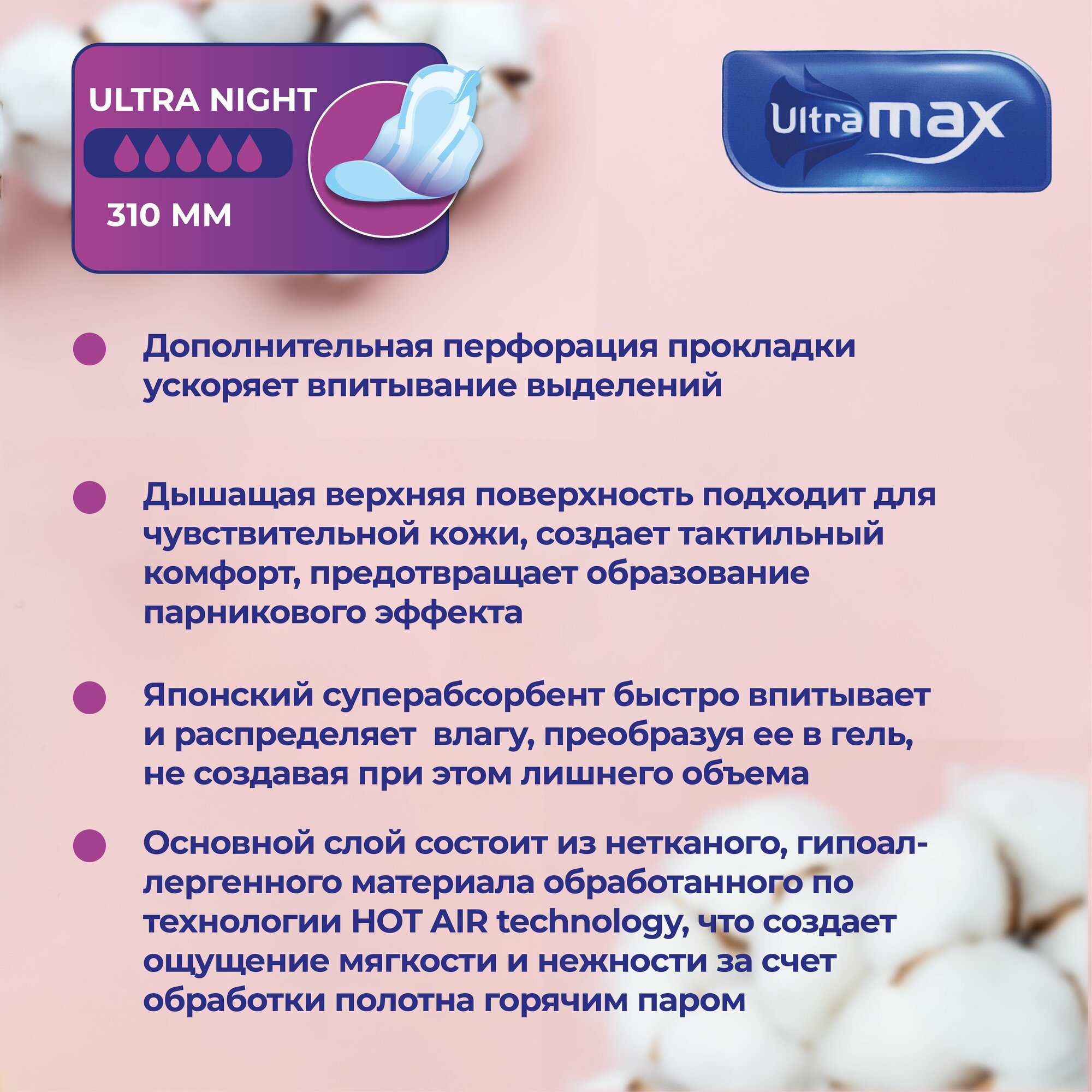 Прокладки гигиенические ночные UltraMax 310 мм. 24 шт. 5 капли интересное: