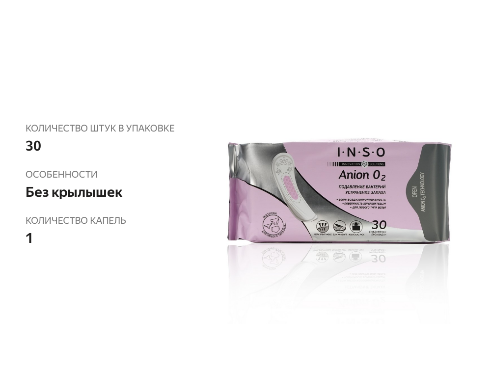 Прокладки ежедневные «INSO» Anion O2, мультиформула, 30 шт. интересное: