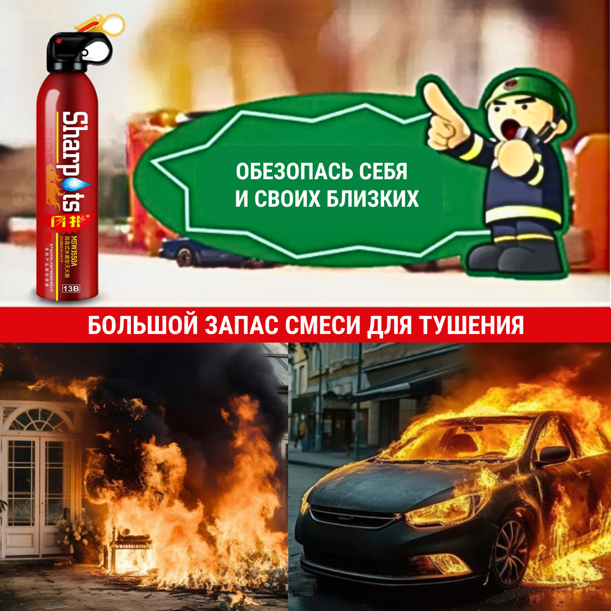 Огнетушитель автомобильный воздушно-пенный Sharp аэрозольный + ремни фиксации и аварийный молоток, 0,55 л интересное: