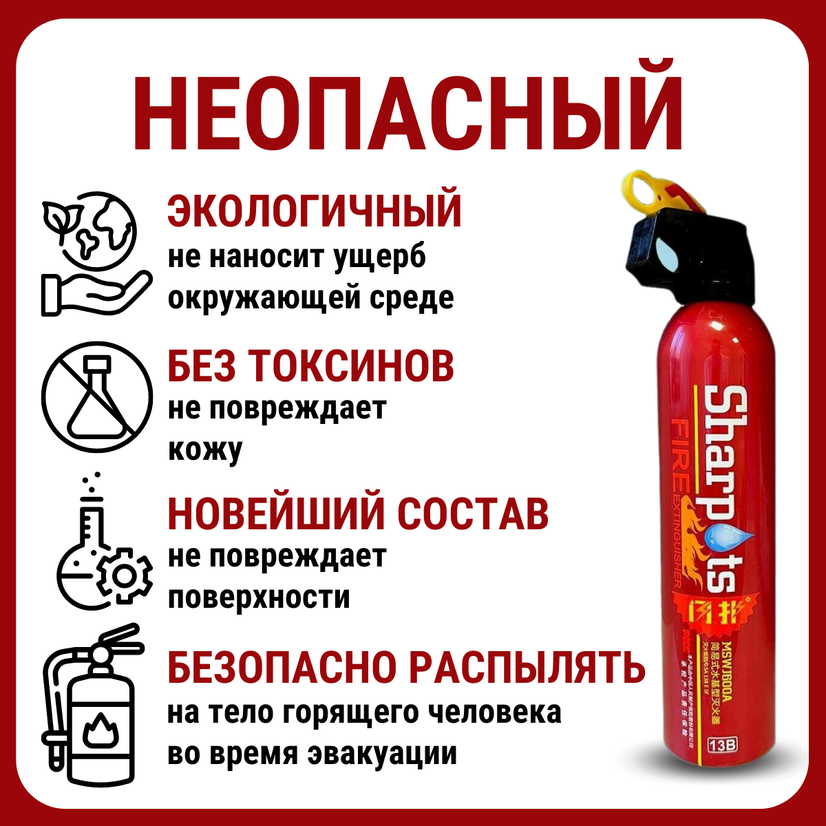 Огнетушитель автомобильный воздушно-пенный Sharp, аэрозольный, 0,55 л