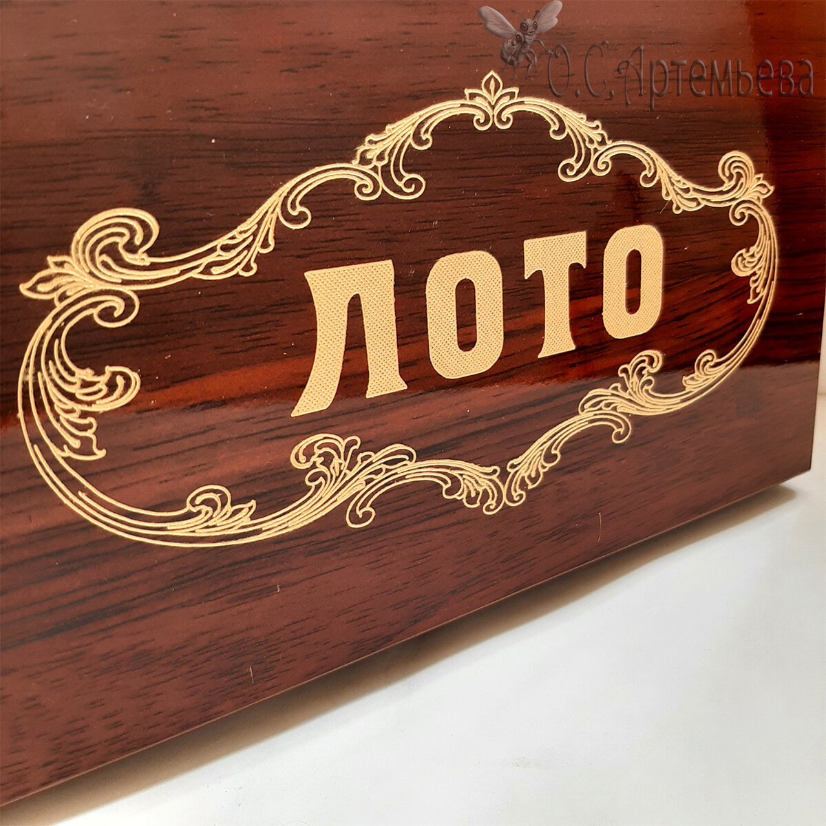 Русское лото в стильной сувенирной шкатулке под дерево с узорной крышкой