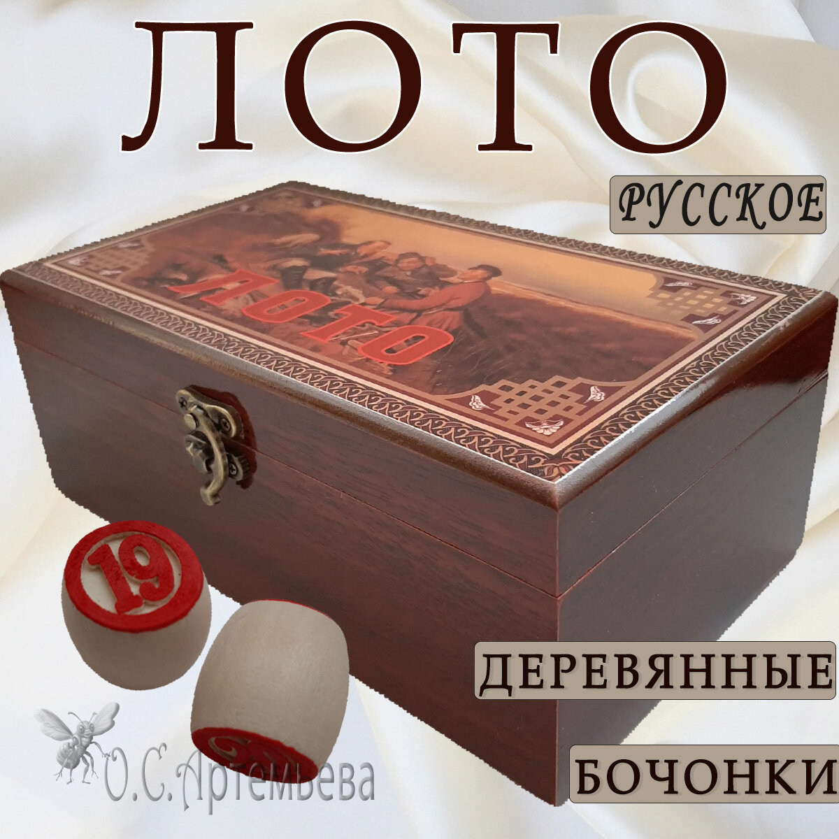 Русское лото в стильной сувенирной шкатулке под дерево с узорной крышкой
