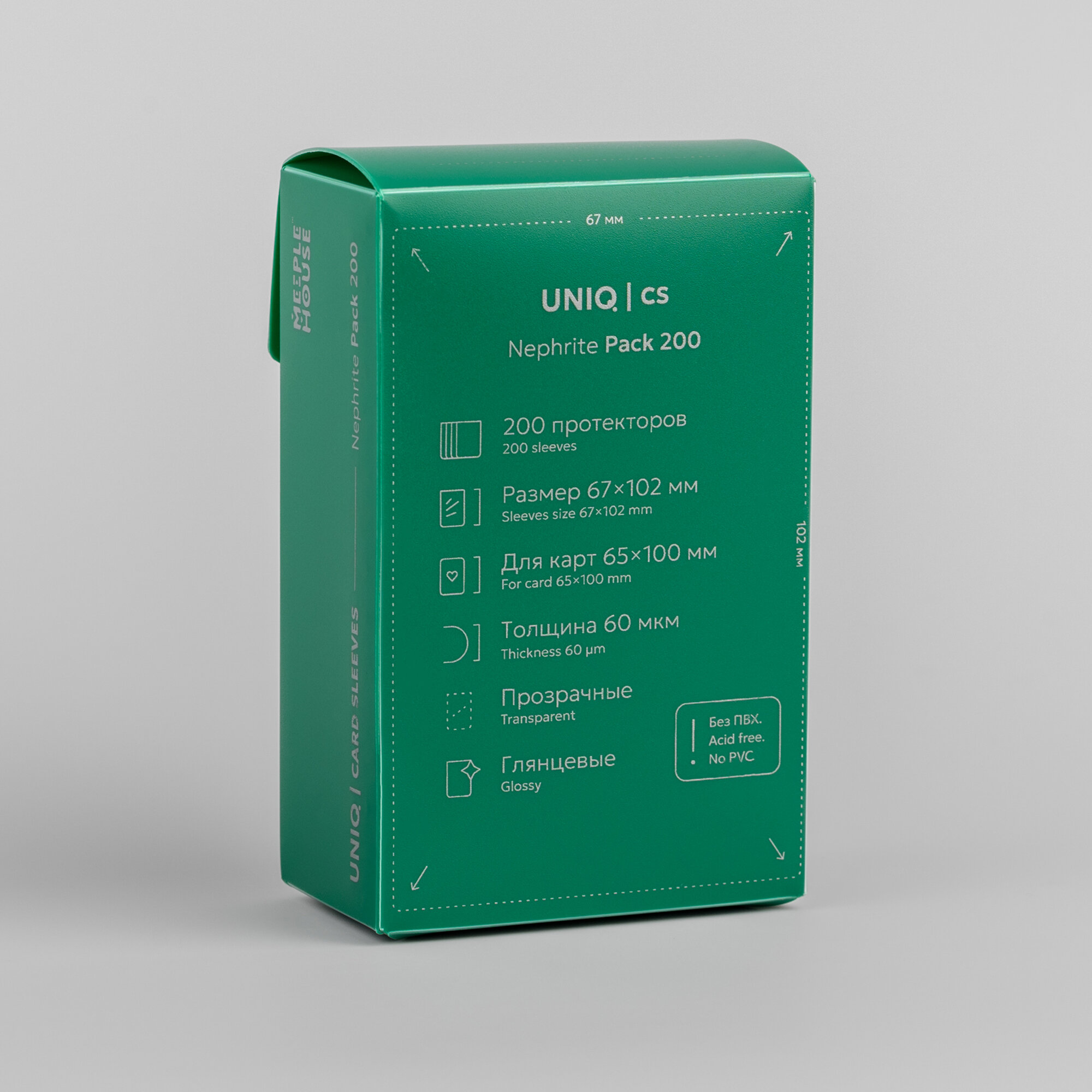Протекторы Meeple House UniqCardSleeves Malachite Pack (размер 56x87 мм) 300 шт: стандарт прозрачные