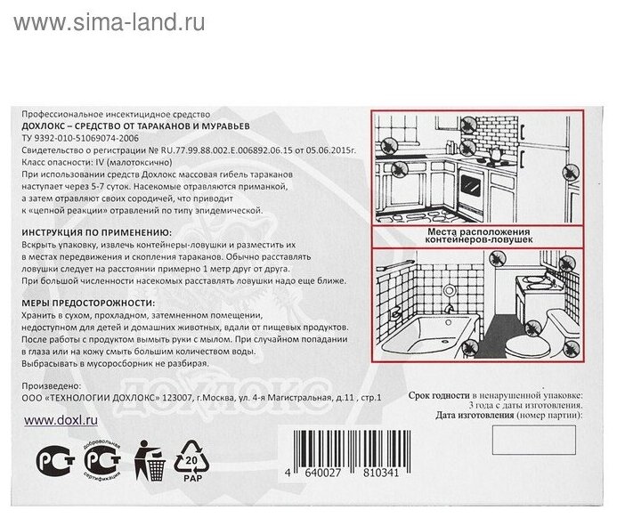 | Отзыв: | Хорошо использовать с гелем, а так толку нет. Но все равно таракашки приползут |