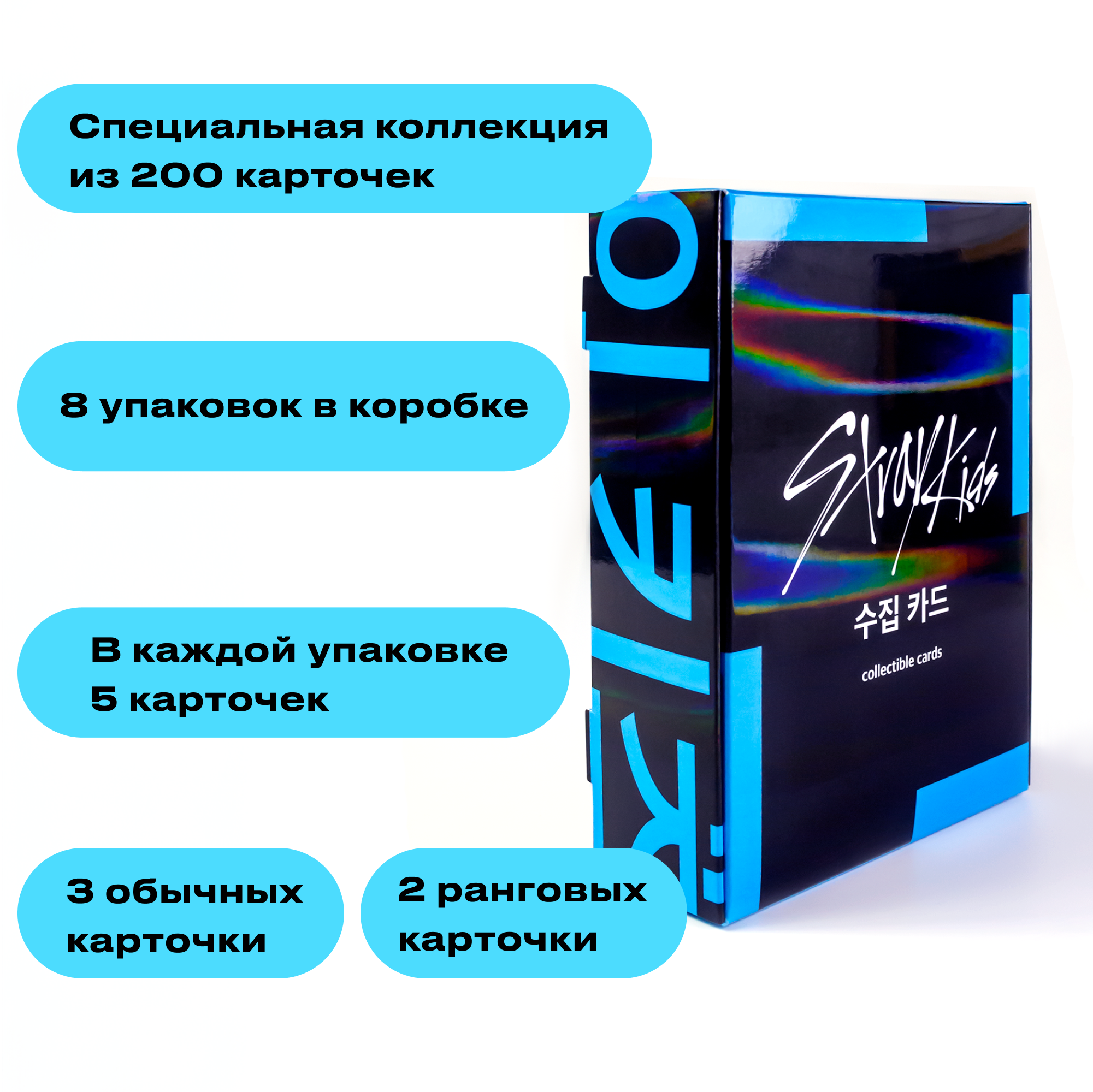 Купить Коллекционные карточки Stray Kids - Эксклюзивный бокс для фанатов из 8 упаковок с редкими картами Полароидами, Глиттерами и Голографией. Blue Box