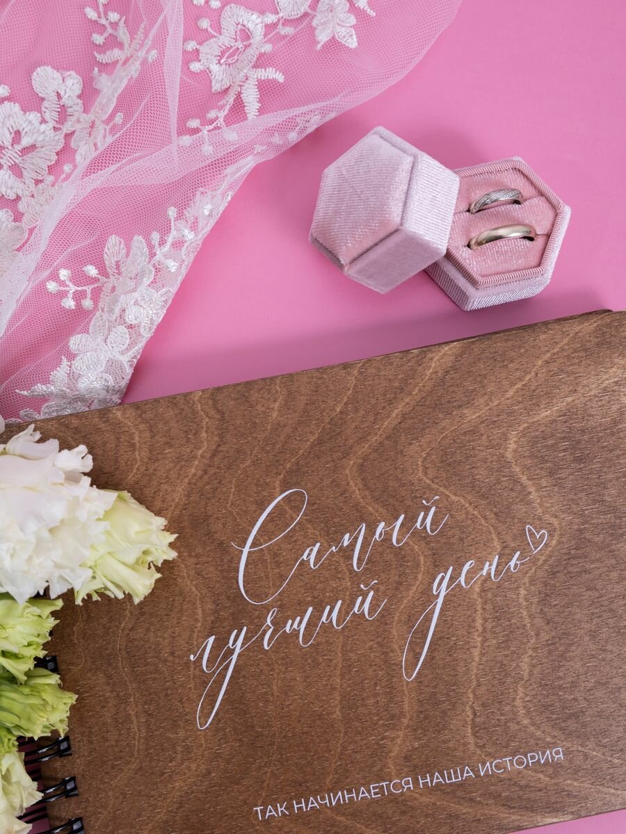 Книга пожеланий в деревянной обложке на свадьбу «Розы». 1шт.
