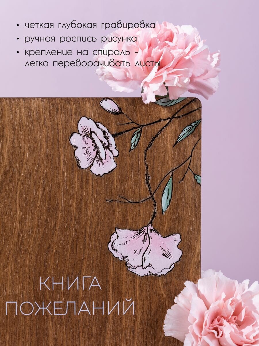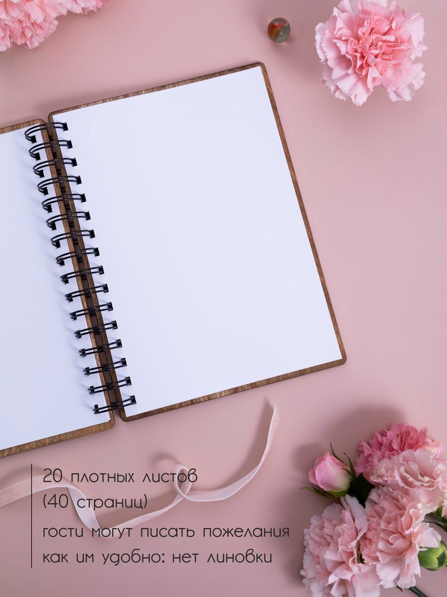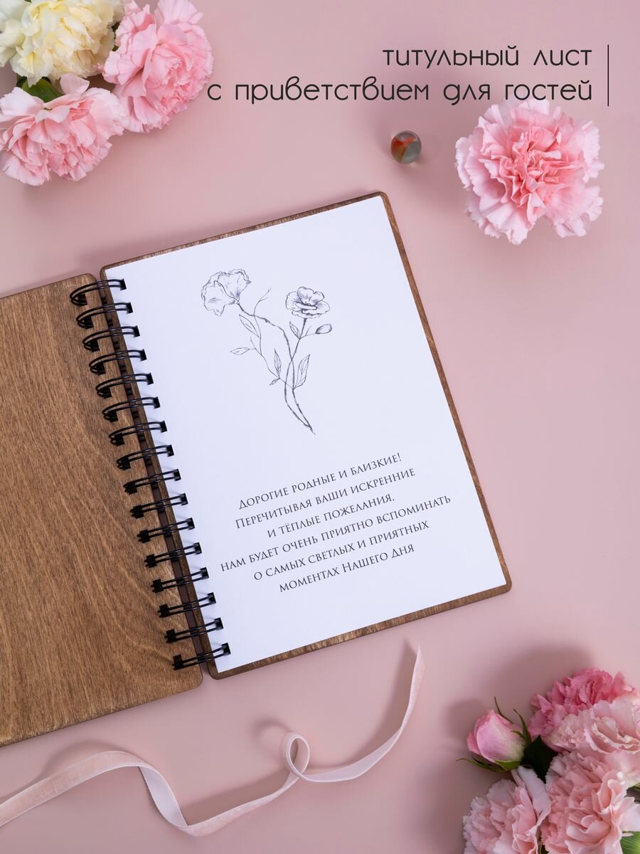 Книга пожеланий в деревянной обложке на свадьбу «Розы». 1шт.
