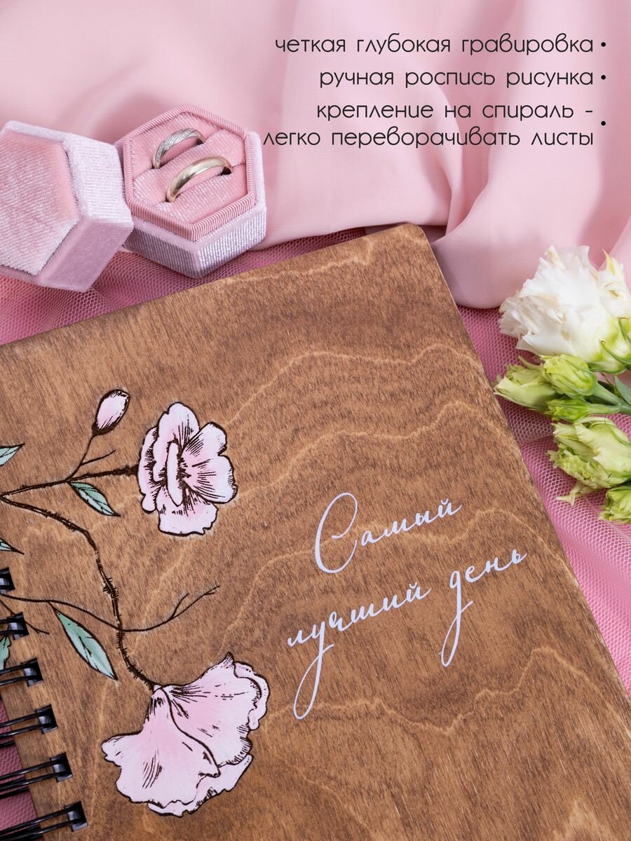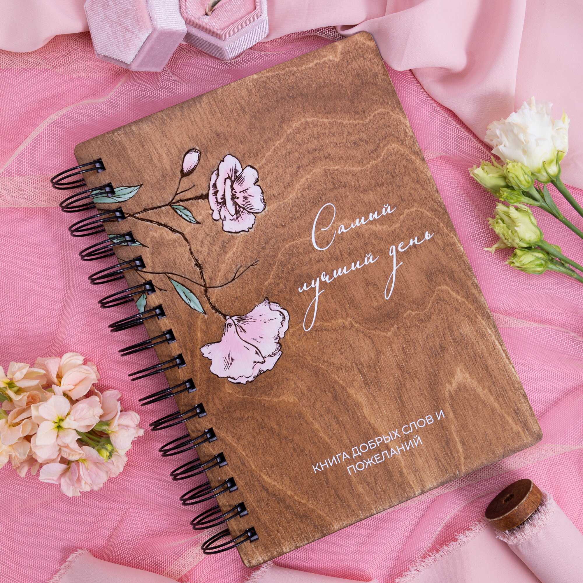Книга пожеланий в деревянной обложке на свадьбу «Розы». 1шт.