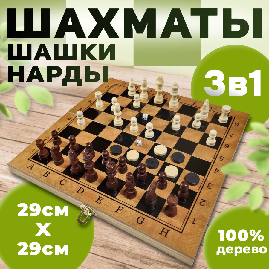 Купить Набор 3в1 шахматы, нарды, шашки, для взрослых и детей, деревянные, 29*29