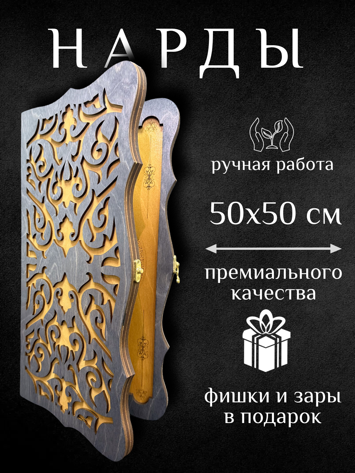 Нарды деревянные резные / 47x47 см подарочные ручной работы / лакированные интересное: