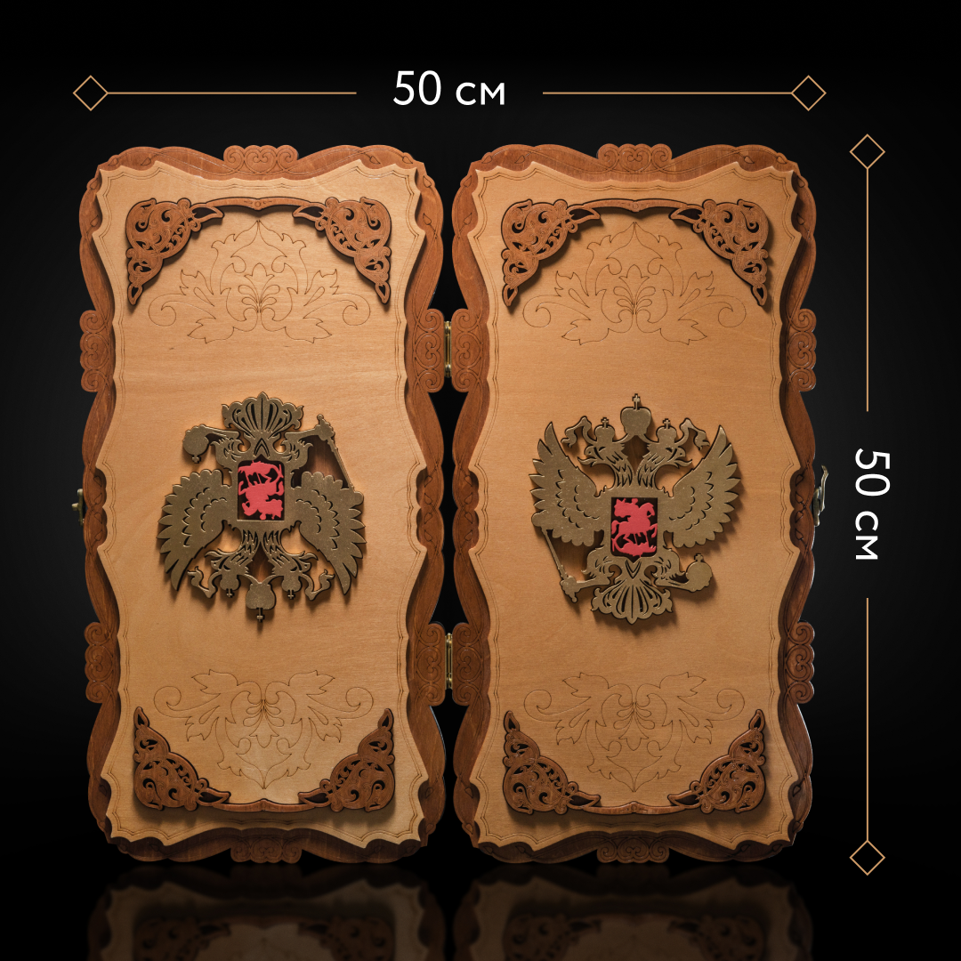 Нарды деревянные большие россия герб 50х50 см лакированные
